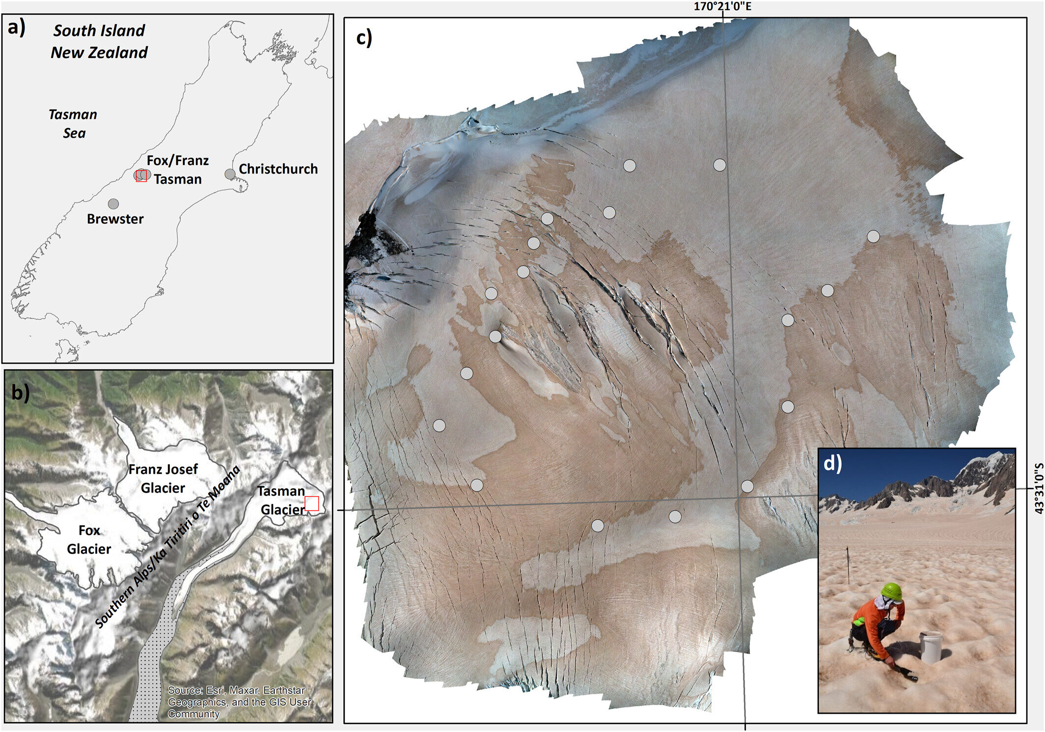 La fotografia time-lapse del ghiacciaio Brewster delle Alpi Meridionali, scattata dal professore associato dell’Università Brian Anderson, ha mostrato la polvere rossa che arrivava sulle montagne alla fine del 2019. Utilizzando l’analisi geochimica, i ricercatori hanno analizzato campioni di polvere dai ghiacciai Fox, Franz Josef e Tasman e hanno individuato la sua origine nell’Australia sudorientale, dove è stata sollevata dalle tempeste di polvere del deserto.