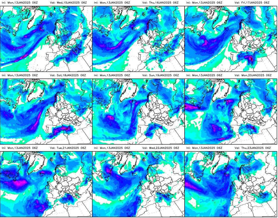Passeranno i giorni ma non cambierà lo scenario: venerdì 17 gennaio, infatti, la tempesta sarà ancora lì, un po’ più ad occidente, ulteriormente rinvigorita e sempre bloccata dal poderoso Anticiclone europeo che stavolta, sì, avrà superato i 1040hPa di alta pressione tra la Francia e i Balcani: