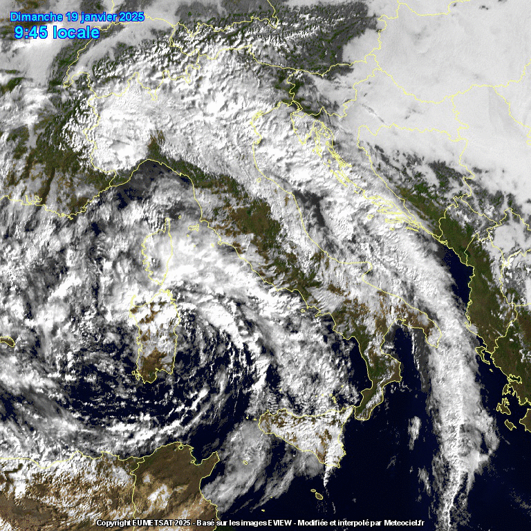 Il Ciclone Mediterraneo Gabri continua a flagellare l’Italia con forte maltempo diffuso su gran parte del Paese e pochi sprazzi di sereno, in queste ore limitati al Sud dopo i fenomeni meteo estremi dei giorni scorsi. La tempesta è ben visibile dalle immagini satellitari in diretta che evidenziano l’occhio del ciclone sulla Sardegna, e tutto intorno il movimento ciclonico delle nubi più o meno cattive in termini di precipitazioni.