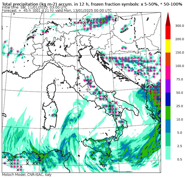Domani, Domenica 12 Gennaio, il maltempo si intensificherà estendendosi a Calabria e Sicilia: sarà una domenica off-limits per ogni tipo di attività all’aperto in tutto il Paese, in montagna e al mare, perchè anche dove non ci sarà maltempo, avremo comunque grande gelo e impetuosi venti di bora. Le temperature crolleranno rapidamente in tutt’Italia e la neve scenderà fino ai 300 metri di quota tra Marche, Abruzzo e Molise, fino ai 400–500 metri in Puglia, Campania e Basilicata, fino agli 800–900 metri nella Calabria settentrionale (Pollino e Sila) e fino ai 1.100/1.300 metri di quota in Sicilia e Calabria meridionale. Il calo della quota neve sarà costante nell’arco della giornata, dal mattino alla sera, in base all’avanzamento dell’aria fredda che invaderà l’Italia proprio nel corso della giornata.