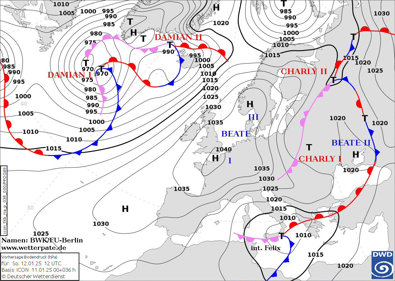 Le mappe bariche del modello tedesco DWD forniscono in modo molto chiaro le indicazioni sul posizionamento e sulla traiettoria di questo Ciclone Polare che provocherà la seconda grande nevicata di stagione al Centro/Sud, su tutto l’Appennino, in modo localmente molto abbondante. Domani, Domenica 12 Gennaio, la tempesta attraverserà lo Stretto di Messina portandosi dal basso Tirreno (dove si formerà stasera), al mar Jonio (dove persisterà a lungo). Ecco perchè sarà una domenica di maltempo impetuoso in tutto il Centro/Sud: