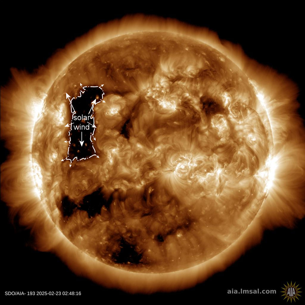 Il 28 febbraio un flusso di vento solare potrebbe colpire il campo magnetico terrestre, con la possibilità di generare una tempesta geomagnetica G1. Questo flusso di materiale gassoso proviene da un buco coronale, che attualmente si sta posizionando in direzione della Terra, secondo quanto riporta il sito specializzato SpaceWeather.com.