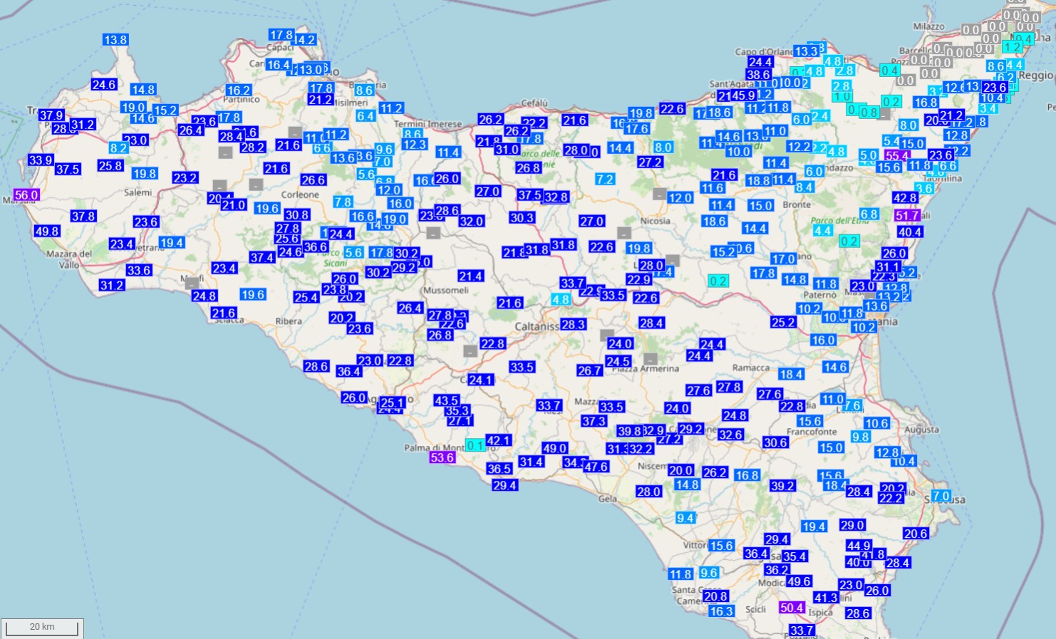 Oggi è il sesto giorno di pioggia consecutivo in molte località della Sicilia. È stata una piovuta eccezionale perché molto estesa su tutto il territorio: stavolta l’area tirrenica è stata la meno colpita dalle precipitazioni.