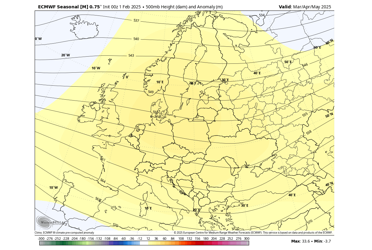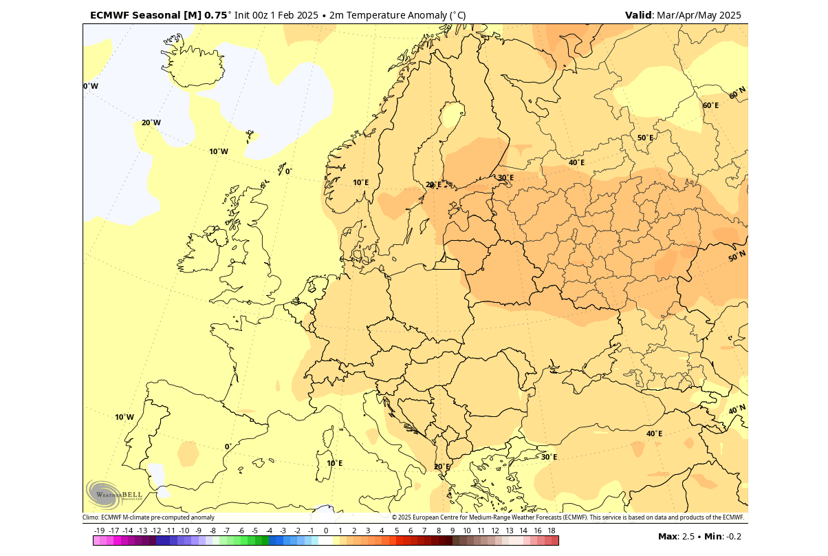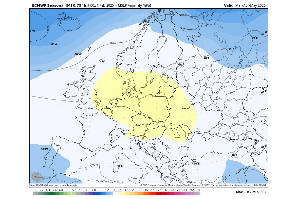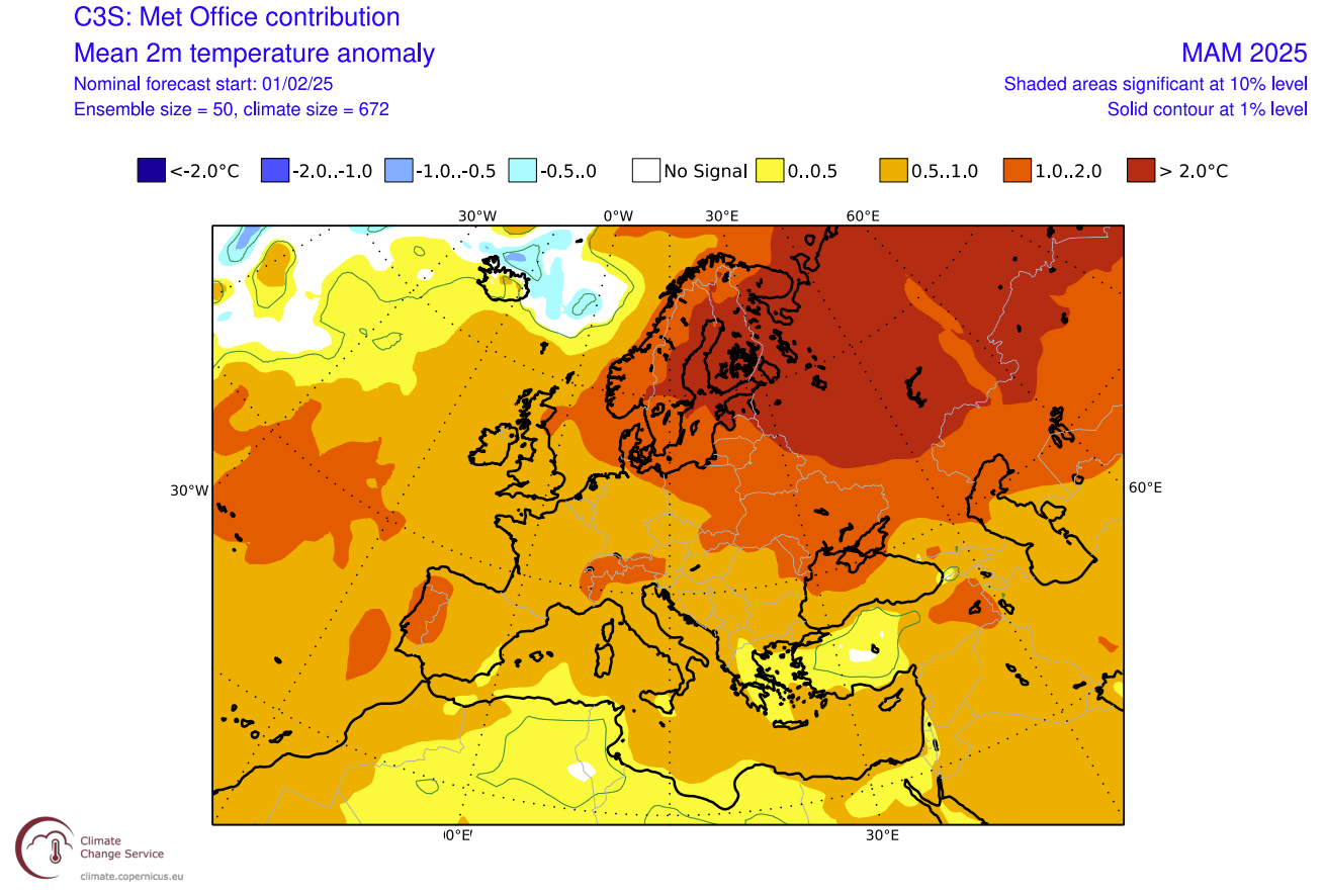 Ma le ultime previsioni accennano a qualche influenza visibile di La Niña sulla primavera 2025 in Europa?