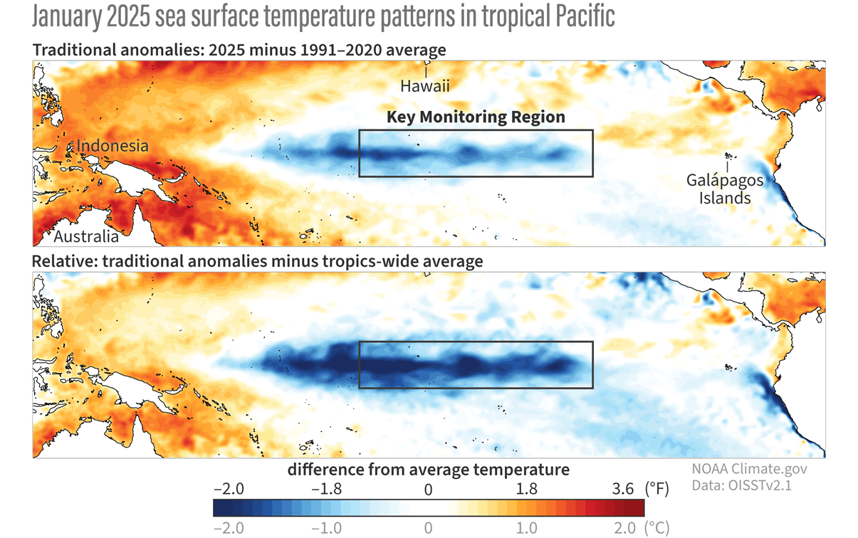 La Niña è solo un nome diverso per le temperature oceaniche basse nell’Oceano Pacifico tropicale. Il sistema oceano-atmosfera è chiamato ENSO (El Niño Southern Oscillation). Questa regione alterna fasi fredde e calde, con un diverso impatto meteorologico globale con ogni fase.