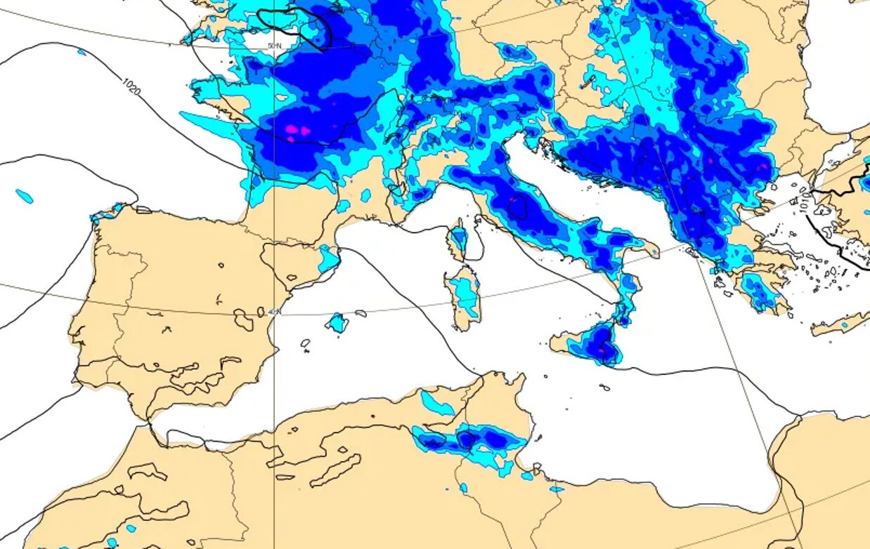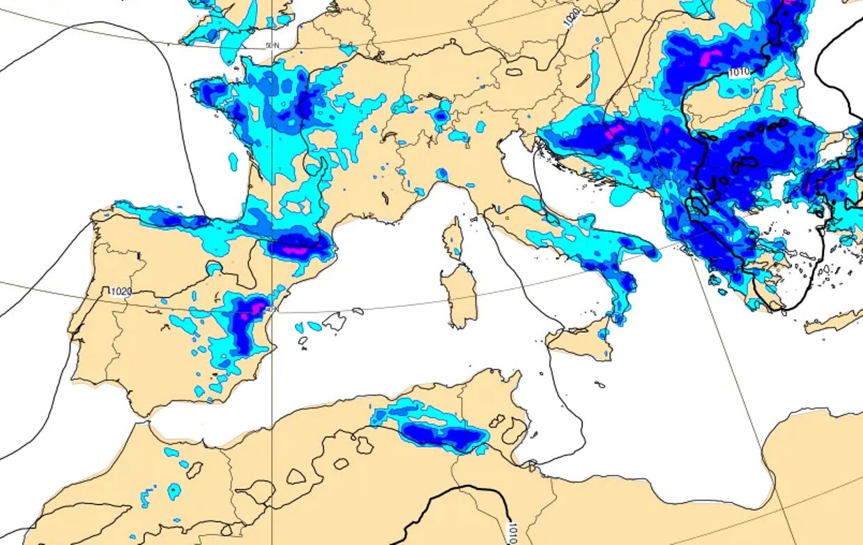 Le mappe pluviometriche del modello europeo ECMWF mostrano quanto pioverà, e con quale intensità, nei prossimi dieci giorni sull’Italia (e in molti altri Paesi europei, dal Regno Unito ai Balcani):