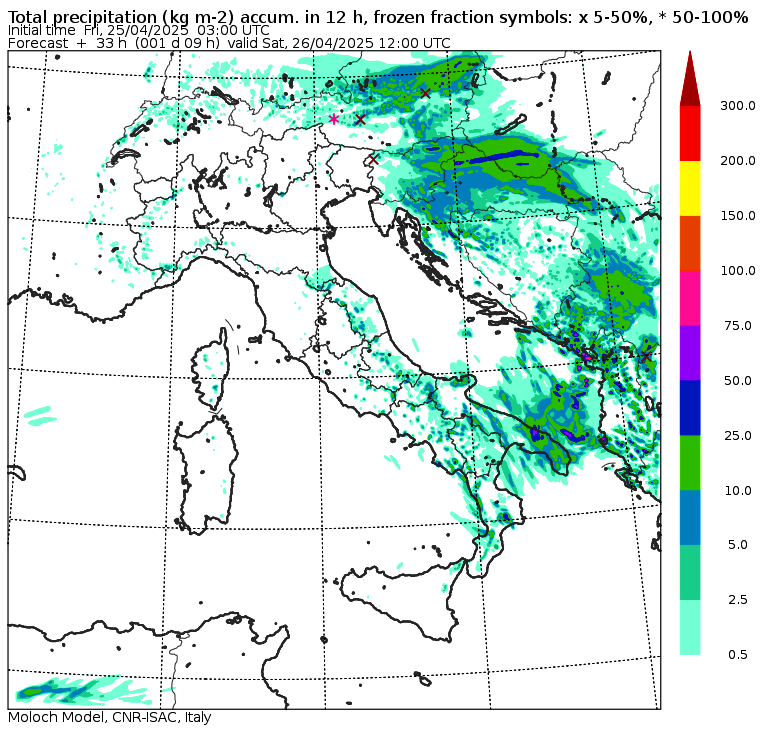 Infuria il maltempo in questa mattinata del 25 Aprile sul Nord/Est dell’Italia, tra Veneto e Friuli Venezia Giulia, dove piove a dirotto e fa anche molto freddo con temperature che oscillano tra +12 e +13°C in pieno giorno, come se fossimo a fine autunno. Le località più fredde della pianura sono piombate addirittura a +11°C, in pieno giorno: un’anomalia davvero rilevante. La pioggia è abbondante: 36mm a Vicenza, 34mm a Mestre, 31mm a Padova, 27mm a Valdobbiadene, 26mm a Treviso, e nelle prossime ore il maltempo si intensificherà ulteriormente sul Friuli Venezia Giulia. Sulle Alpi è tornata persino la neve.