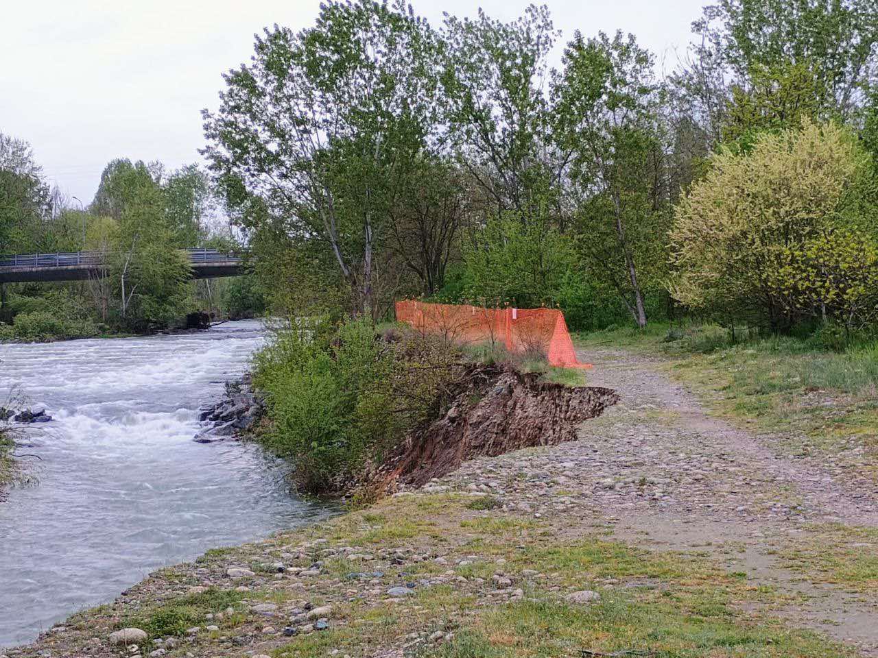 Crollo su un argine del Sangone