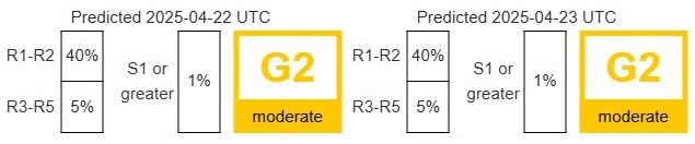 Una tempesta geomagnetica classe G2 potrebbe colpire la Terra tra il 22 e il 23 aprile, secondo i previsori dello Space Weather Prediction Center della NOAA. La causa dell’evento è una regione di interazione co-rotante, nota come CIR, che è diretta verso il nostro pianeta. Il fenomeno potrebbe dare vita a spettacolari aurore boreali, visibili in Canada e in alcuni stati settentrionali degli Stati Uniti, dalla costa Est del Maine fino a Washington.