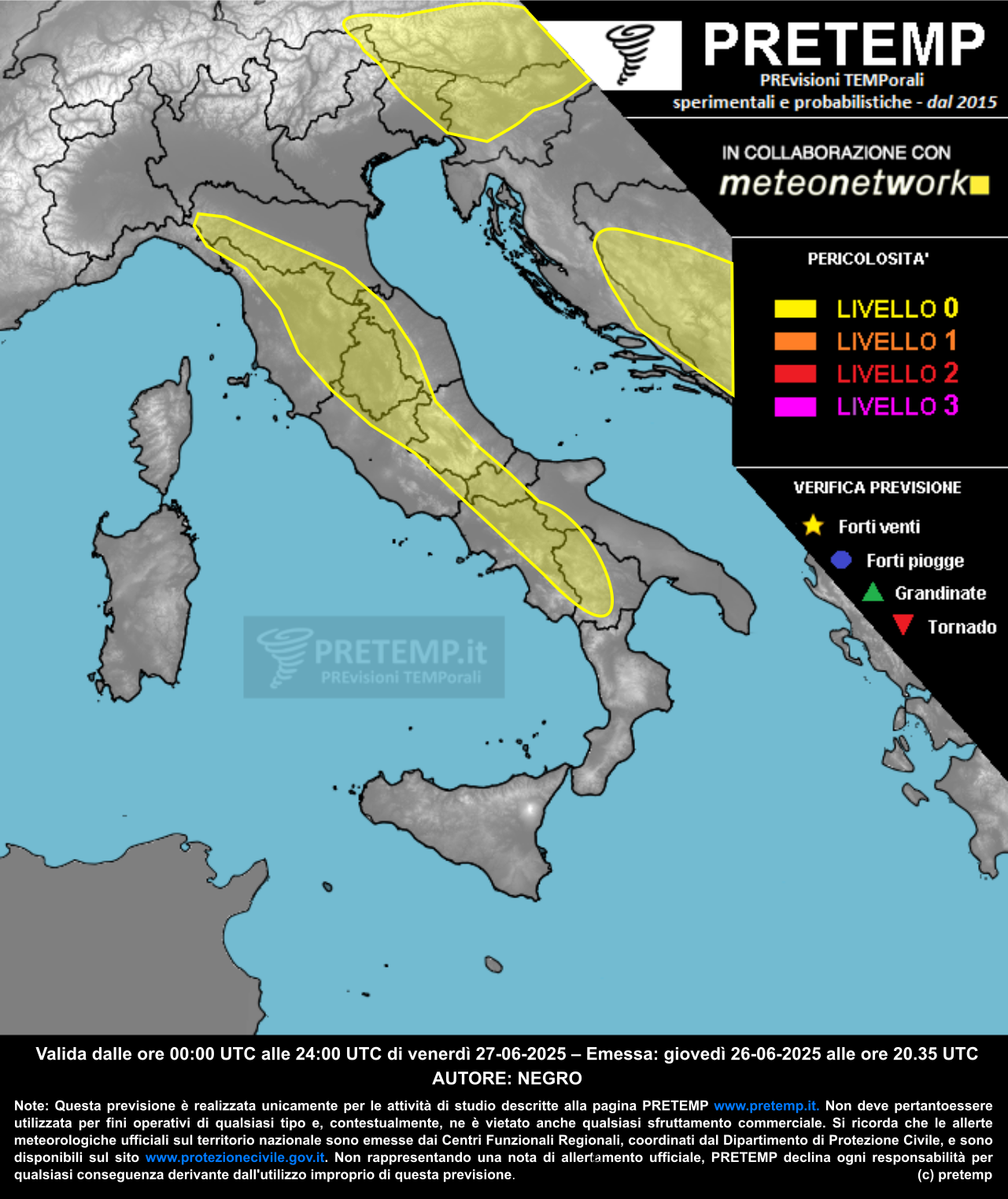“Durante il giorno aria ancora relativamente fresca in quota potrà favorire instabilità lungo l’Appennino dall’Emilia alla Basilicata. Alcuni temporali a cella singola potranno formarsi lungo i rilievi ed evolvere in cluster. Sono previsti isolati forti rovesci e grandinate di piccole dimensioni, la convezione dovrebbe cessare ovunque dopo il tramonto“, riporta il bollettino PRETEMP.