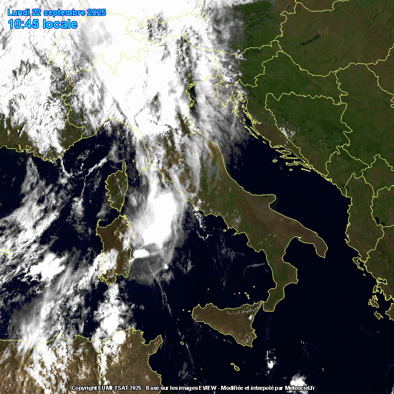 L’allarme maltempo continuerà nelle prossime ore, anzi, si intensificherà ulteriormente. C’è crescente preoccupazione per un’evoluzione meteo terribile tra stasera e do mani, martedì 23 settembre. Le immagini satellitari sono molto chiare rispetto ai forti temporali che si formano intorno alla Sardegna e risalgono verso Lazio e Toscana, mentre al Nord il maltempo più estremo si sposta verso il Nord/Est: