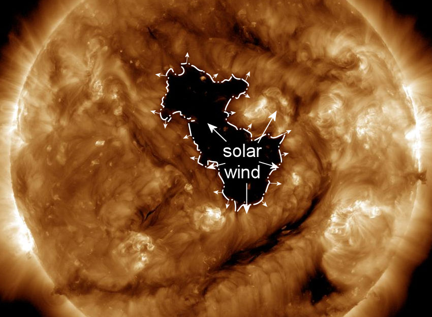 A differenza delle più note macchie solari, i buchi coronali non sono aree fredde, ma regioni dove il campo magnetico solare si apre verso lo Spazio, lasciando che il plasma caldo e il vento solare possano fluire liberamente. In queste zone la densità di particelle è minore, e per questo appaiono scure nelle immagini ultraviolette.
