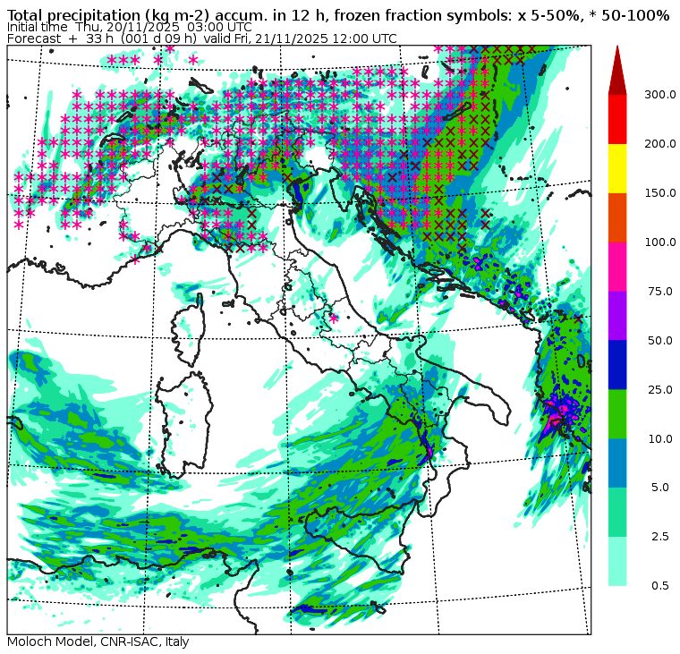 Domani sarà una giornata campale per il maltempo sull’Italia: è il momento in cui il Vortice Polare piomba sul nostro Paese e subito, sin dal mattino, avremo forti nevicate al Nord, in pianura Padana, e forti temporali al Sud, tra Campania, Calabria e Sicilia. Le mappe del modello MOLOCH del CNR ci mostrano i nel dettaglio le precipitazioni previste per la giornata, iniziando con la mattinata: