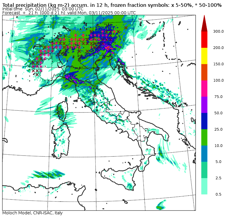 Confermata la neve abbondante sulle Alpi, specie in tarda sera fino a quote collinari, sotto i 1.000 metri di altitudine. Gli accumuli saranno abbondanti oltre i mille metri, con picchi di 50cm di neve fresca nelle zone di confine tra l’Italia e l’Austria. Ma il maltempo non finisce qui: questa nuova perturbazione colpirà tutta l’Italia nella giornata di domani, lunedì 3 novembre, persistendo poi al Sud anche dopodomani, martedì 4.