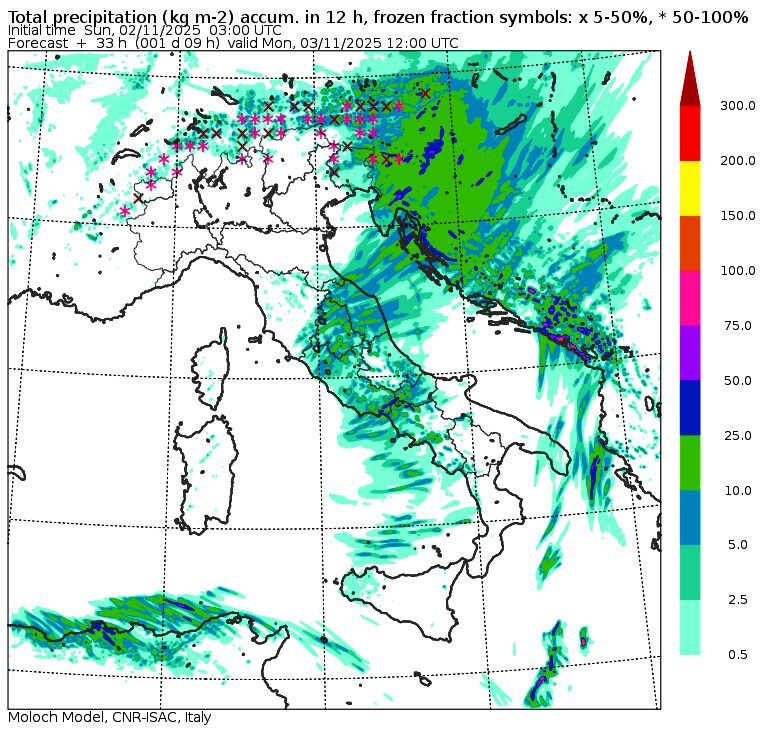 Domani, lunedì 3 novembre, il maltempo si estenderà rapidamente al Centro/Sud sin dalle prime ore del mattino, con un brusco calo termico dopo il caldo anomalo di questi giorni. Sarà una mattinata di piogge su Marche, Umbria, Lazio, Abruzzo, Molise e Campania, in rapida estensione al resto del Sud, mentre tornerà bello al Nord seppur con le ultime piogge residue in Friuli Venezia Giulia: