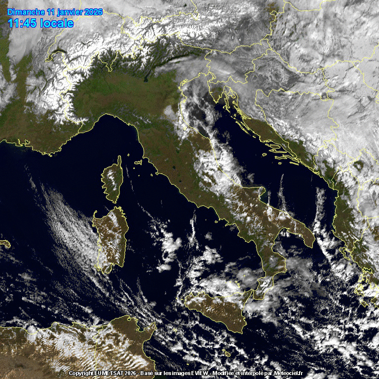 Gli ultimi aggiornamenti delle immagini satellitari in diretta evidenziano quante nubi stia generando l’irruzione polare sul medio Adriatico, dalla Romagna al Molise, con le prime nevicate proprio in Abruzzo dove Pescara è ferma da ore, in pieno giorno, ad appena +3°C.