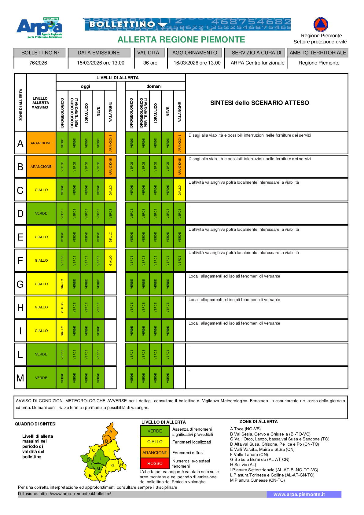 Arpa Piemonte ha emesso ancora un’allerta arancione per valanghe su nord Piemonte e un’allerta meteo gialla per rischio idrogeologico al confine con la Liguria e pianura orientale. “La depressione responsabile del maltempo delle ultime 24 ore è attualmente localizzata tra le isole Baleari e la Sardegna e si allontanerà verso sud nel pomeriggio permettendo un miglioramento del tempo con marcata attenuazione delle precipitazioni ed esaurimento nella notte. Domani giornata soleggiata con locali nebbie su pianure e fondovalle all’alba, in rapido dissolvimento diurno; rinforzi di vento su Alpi nordoccidentali. Cielo sereno o velato martedì”, si legge nel bollettino di allerta.