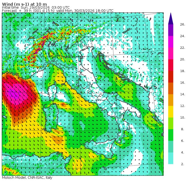 Questa nuova irruzione polare sarà accompagnata dall’ingresso di forti venti di maestrale dalla Valle del Rodano e dalle Alpi, ecco perchè già lunedì sera avremo raffiche di oltre 130km/h tra Piemonte e Valle d’Aosta, con un foehn pazzesco in pianura, ma anche forti venti nel cuore della pianura Padana tra Piemonte, Lombardia ed Emilia Romagna dove avremo una vera e propria tempesta con raffiche fino a 80–90km/h.