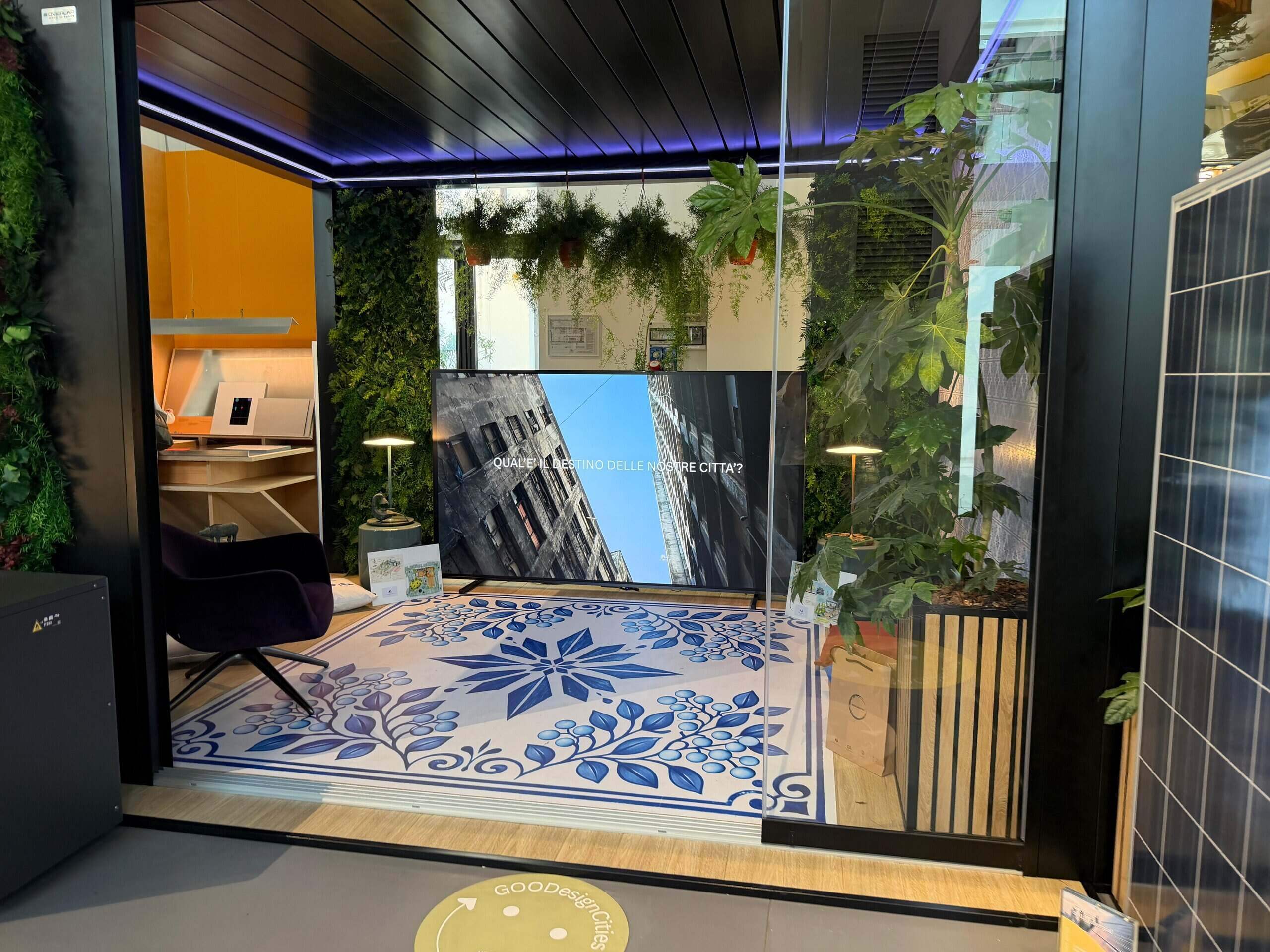 L’installazione all’ADI Design Museum non trascura l’efficienza energetica, integrando vetrate e coperture solari sviluppate con la tecnologia Sofisolar ESCO per la produzione di energia pulita. Il design include anche soluzioni avanzate per la ventilazione naturale, come coperture apribili, fioriere solari con sistemi di nebulizzazione per il raffrescamento e giardini verticali. L’attenzione alla biodiversità è garantita dalla presenza di micro-orti, piante aromatiche per gli impollinatori e aree verdi dry garden, che favoriscono la rinaturalizzazione urbana senza sprechi idrici.
