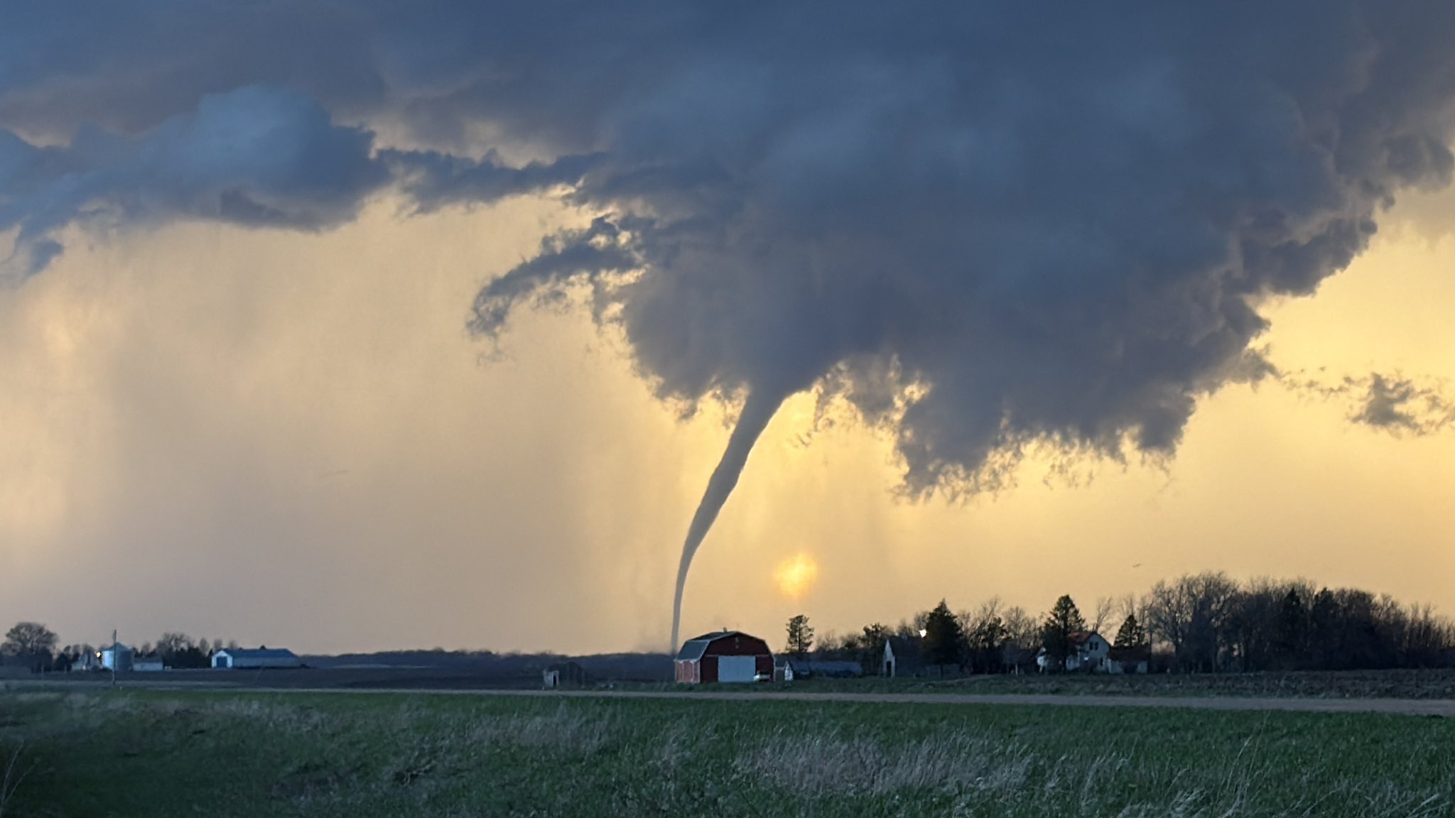 Dei 5 allarmi lanciati nel tardo pomeriggio, 2 si sono effettivamente trasformati in tornado ben visibili a occhio nudo. Il primo tornado è stato individuato a circa cinque miglia a Nord di Emmetsburg, nelle vicinanze dell’area rurale di Graettinger; sebbene manchi ancora una conferma ufficiale definitiva da parte dei servizi tecnici nazionali, numerose prove fotografiche fornite dai residenti ne testimoniano chiaramente il passaggio. Il secondo evento, decisamente più documentato e impattante, si è sviluppato appena a Nord dell’abitato di Webb. In questo caso, la presenza del tornado al suolo è stata confermata ufficialmente dal Clay County Emergency Management e dagli “storm spotter” presenti sul posto.