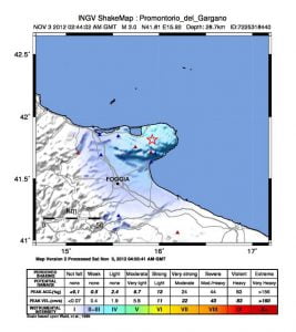 Tre scosse di terremoto sul Gargano, la più forte di magnitudo 3.0: mappe e dettagli di Peppe Caridi 3 Nov 2012 | 08:51