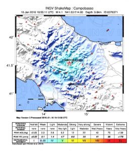 Terremoto a Campobasso: la scheda con gli effetti macrosismici